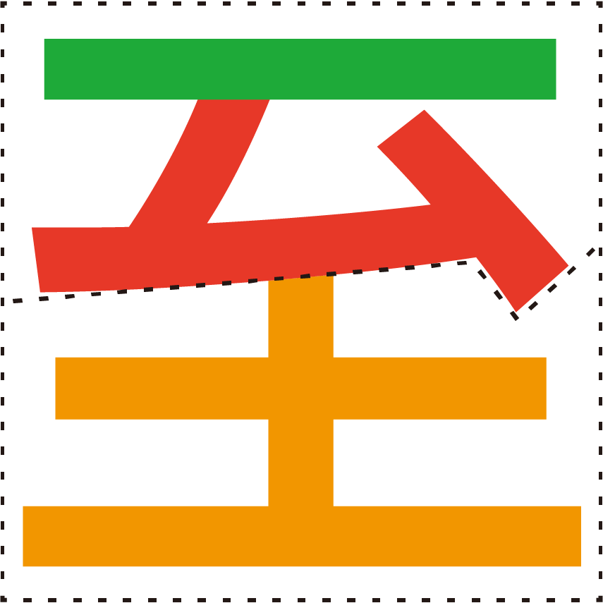 色がついたマスに入る部首はどれ? 下の中から選んでみよう