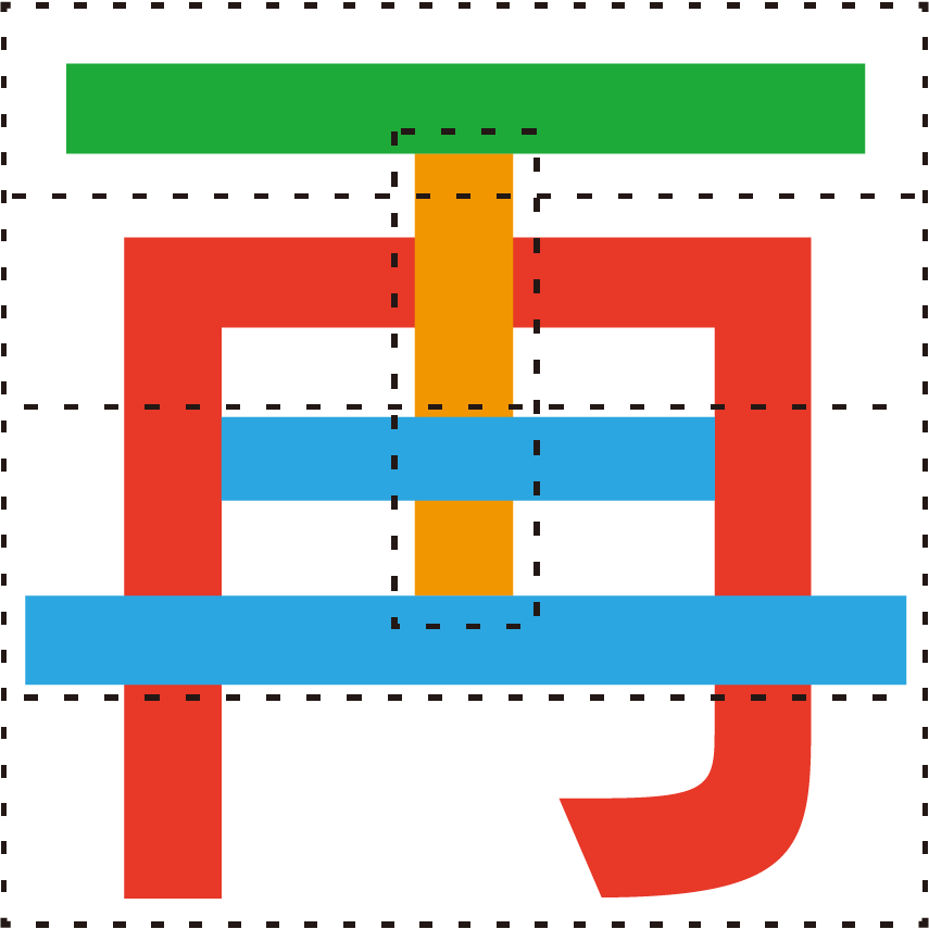 色がついたマスに入る部首はどれ? 下の中から選んでみよう